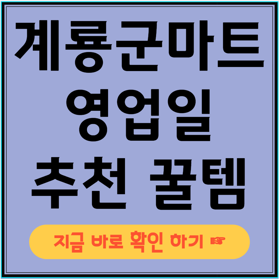 계룡 군마트 영업일이 궁금하셨다면, 이제 걱정 마세요! 운영시간 및 휴무일을 잘 파악하고 방문하시면 더욱 편리한 쇼핑이 가능합니다.