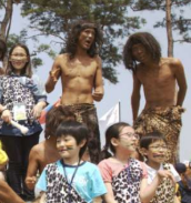 가장 인기 있는 프로그램 중 하나는 바로 구석기시대 복장 체험입니다.